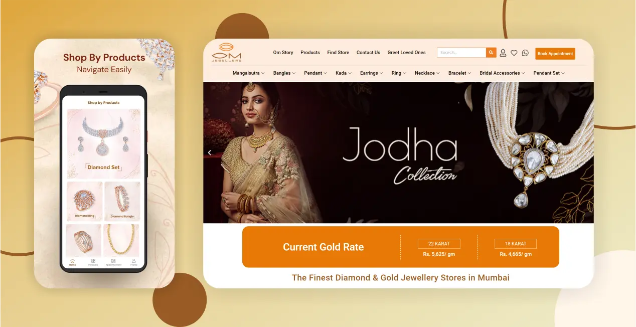 A jewellery chain rooted in Mumbai, offering a product catalog display alongside a convenient appointment booking system.